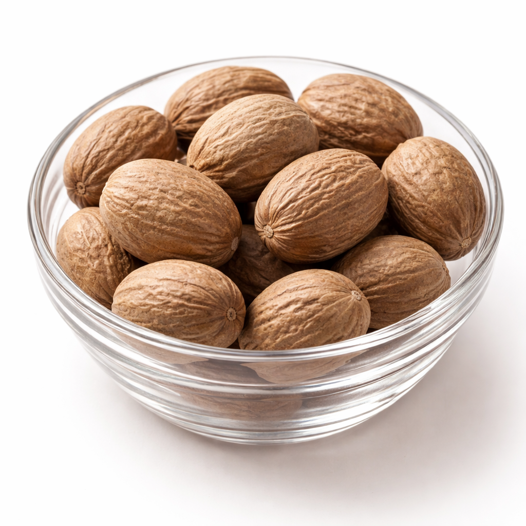 Standardized Nutmeg (Myristica fragrans) from professionally managed Indonesian supply chains, ensuring stable quality for modern food, cosmetic, and botanical industries.